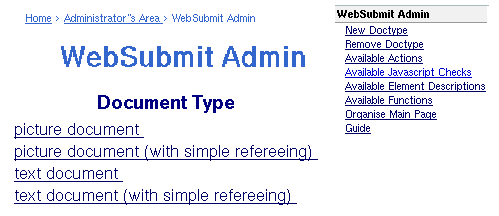 | Hlavní stránka > Areál administrátora > WebSubmit Průvodce pro správce |